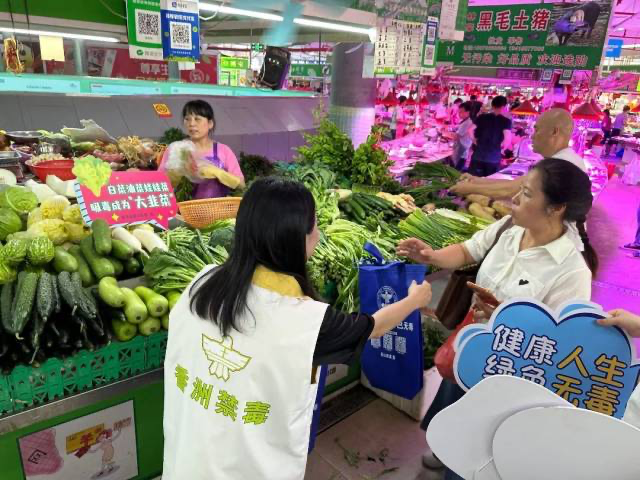 禁毒宣傳“進(jìn)市場(chǎng)”活動(dòng),以群眾“菜籃子”為載體,通過(guò)詼諧有趣的標(biāo)語(yǔ),將禁毒知識(shí)裝進(jìn)群眾的心中,增強(qiáng)廣大群眾識(shí)毒、防毒、拒毒意識(shí)和能力,營(yíng)造全民禁毒濃厚氛圍。