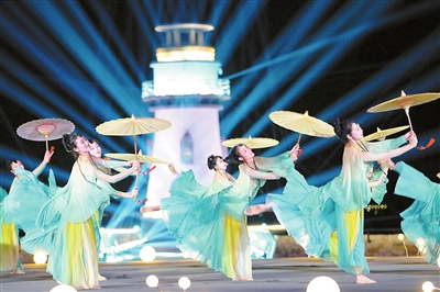 在分會(huì)場(chǎng)愛情郵局,愛情燈塔閃耀著迷人的光芒,與波光粼粼的海面相映成趣,呈現(xiàn)一派優(yōu)雅、靈動(dòng)的時(shí)尚氣息。在這方舞臺(tái)上,《珠海古韻》《情侶路》《花信來時(shí)》等本土原創(chuàng)文藝節(jié)目展現(xiàn)出屬于珠海的獨(dú)特氣韻。