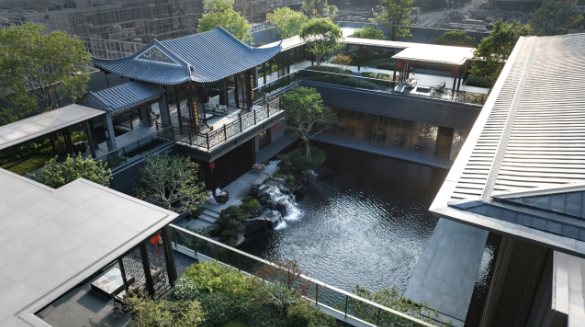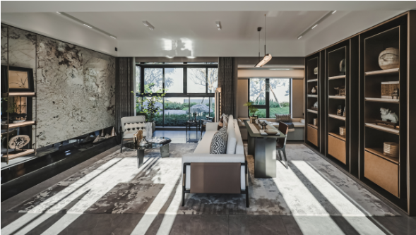 沿襲中華傳統建筑的歸家禮序,項目采用了五進院的建筑規(guī)格和標準,從社區(qū)主入口行至內部,匠心可謂滲透在每一寸細節(jié)之中。率先亮相的是由傳統嶺南建筑演變而來的長達80米的壯闊門樓,雙重屋檐的設計融合現代元素,沉穩(wěn)而大氣。漫步進入星級入戶大堂,目之所及皆是風景。