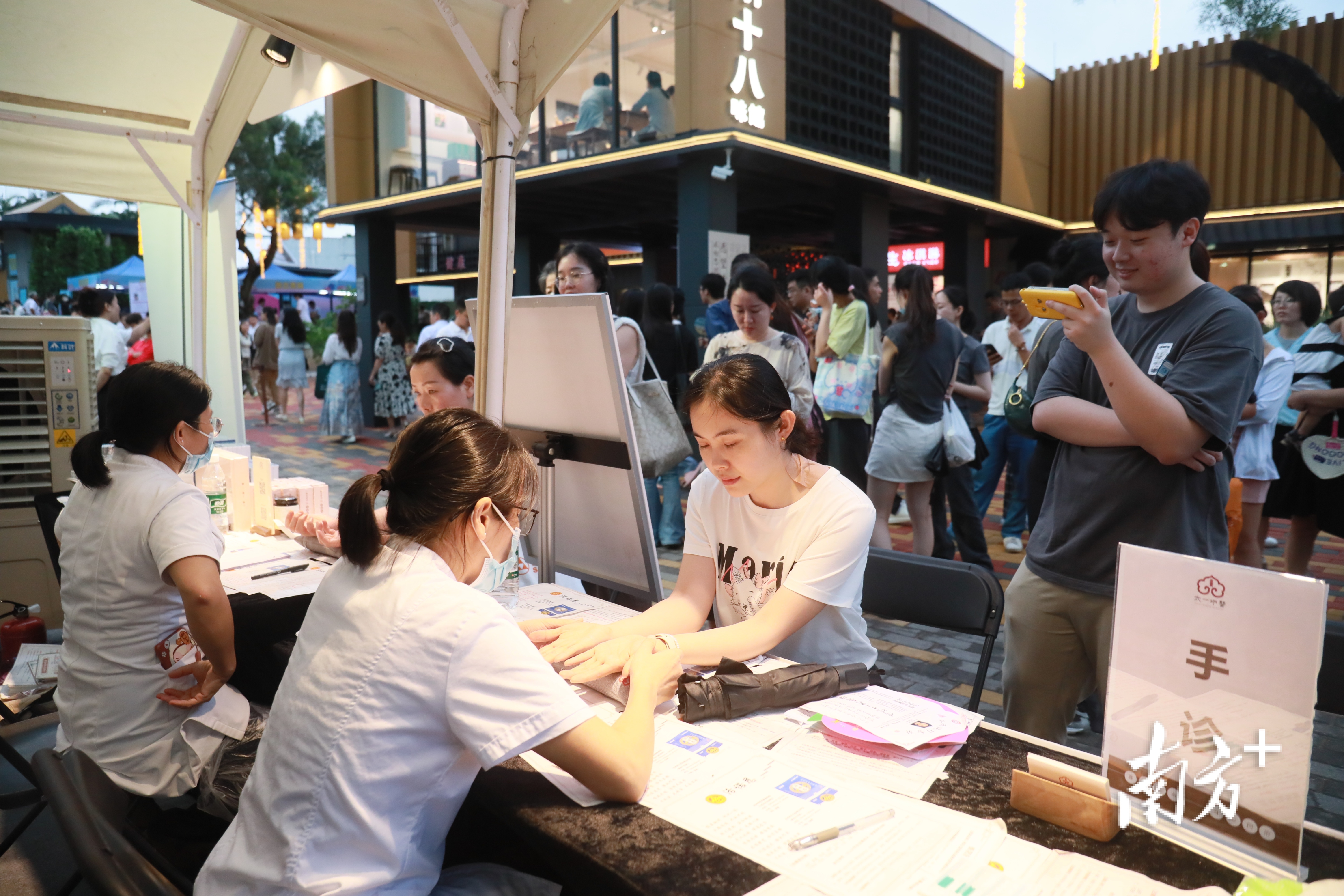 在“中醫(yī)藥一條街”(東街)啟用當(dāng)天,珠海也在此舉辦了“年輕人自己的健康廟會”,為市民提供特色中醫(yī)診療服務(wù)?;顒友埖綇V東省中醫(yī)院珠海醫(yī)院的名醫(yī)專家為市民提供中醫(yī)義診、中醫(yī)藥知識科普,以及舒筋祛痛、安神助眠、悅顏養(yǎng)膚等非遺特色療法體驗服務(wù)。